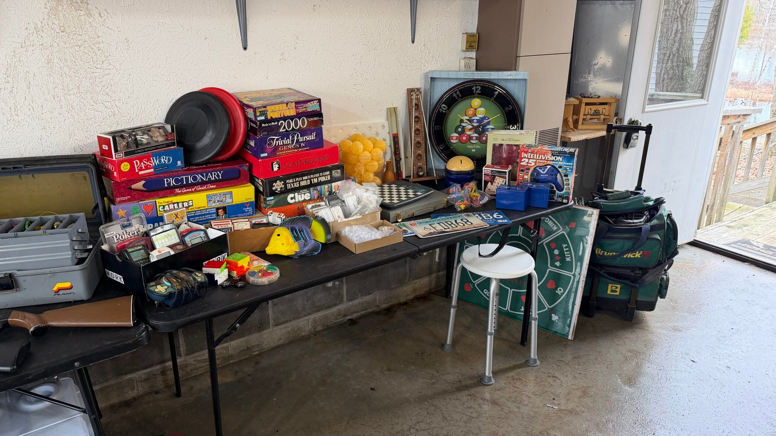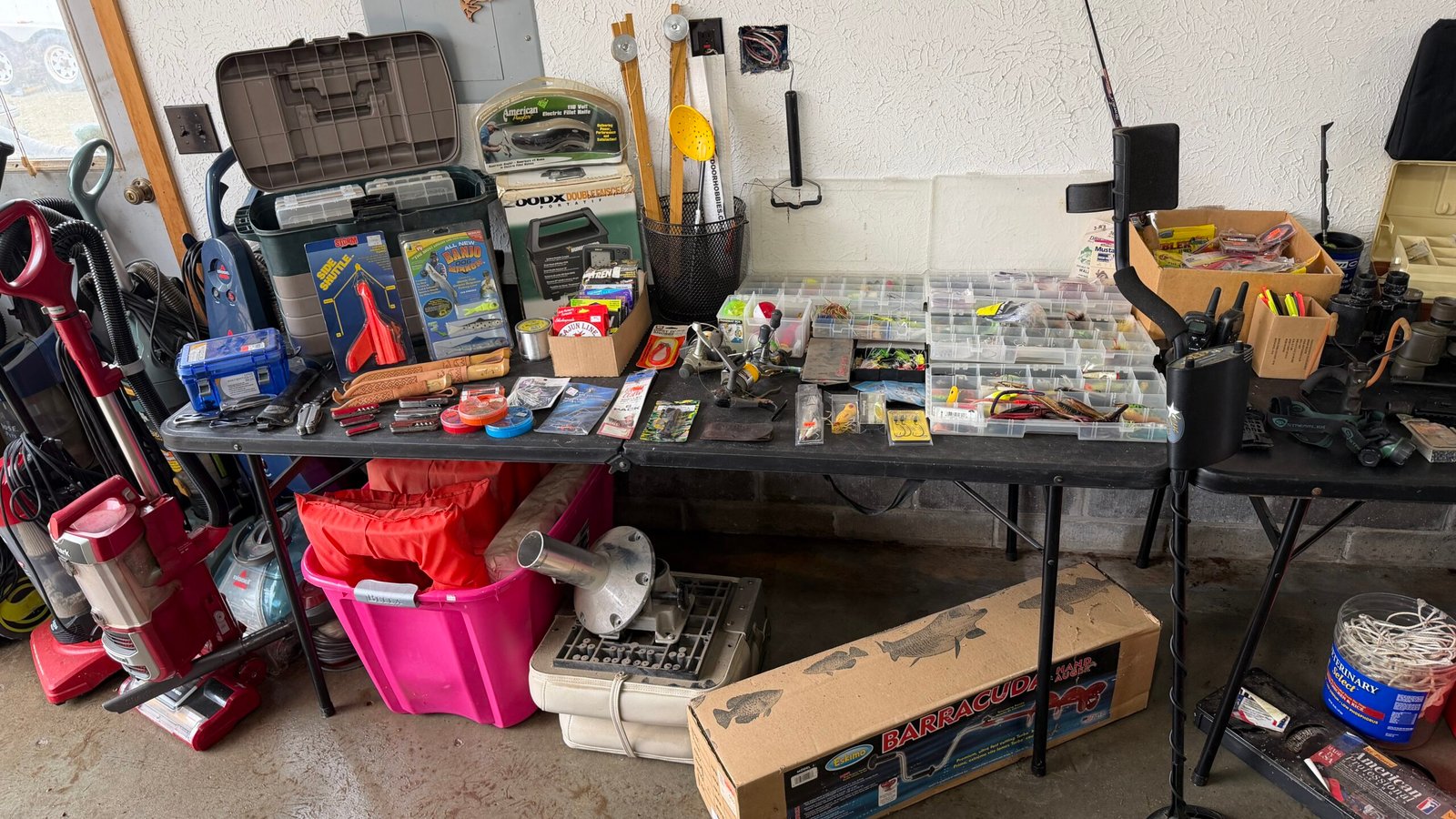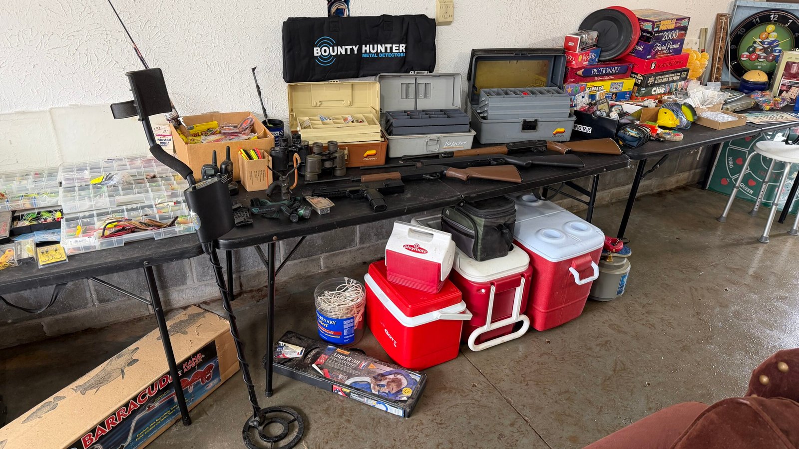 This lakeside property holds a variety of treasures, bargains, and a wide range of collections. The home is packed with rustic decor, quality household goods and furnishings, billiards and games, and endless everyday items. We have a garage full of tools, hardware, water toys, equipment, outdoor furniture, and even more household goods. Explore the home and property to find a bargain to take home!